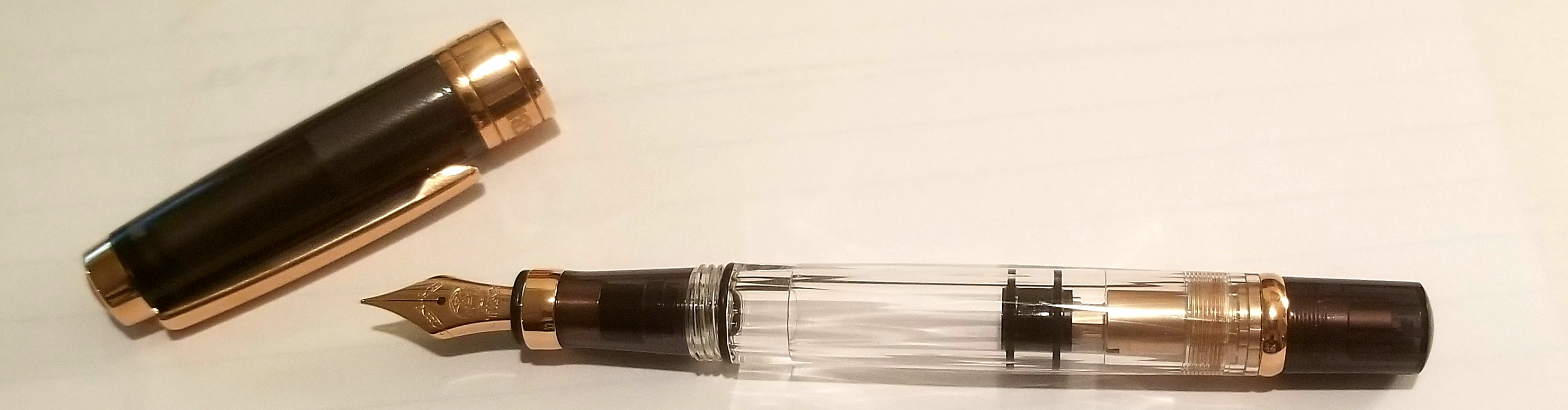 Ever since the news broke that TWSBI was releasing a new Diamond 580 in rose gold, I decided that this would be my first TWSBI pen. I have always been a fan of the combination of rose gold and black. I have a number of pens now with rose gold especially. This pen has the rose gold in the right places for me with one notable exception: the company logo on the top of the cap. It does not bother me, but I would have liked to see rose gold in the cap’s logo as well.