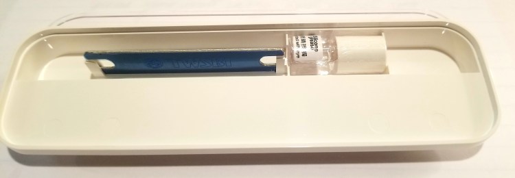 When I first opened the box, I was treated to the expected level of nice presentation from a pen at its price point. It was the standard presentation for this model from TWSBI, The underside of the plastic package the pen comes in also housed a small vial of silicone grease and a wrench needed to disassemble the pen.