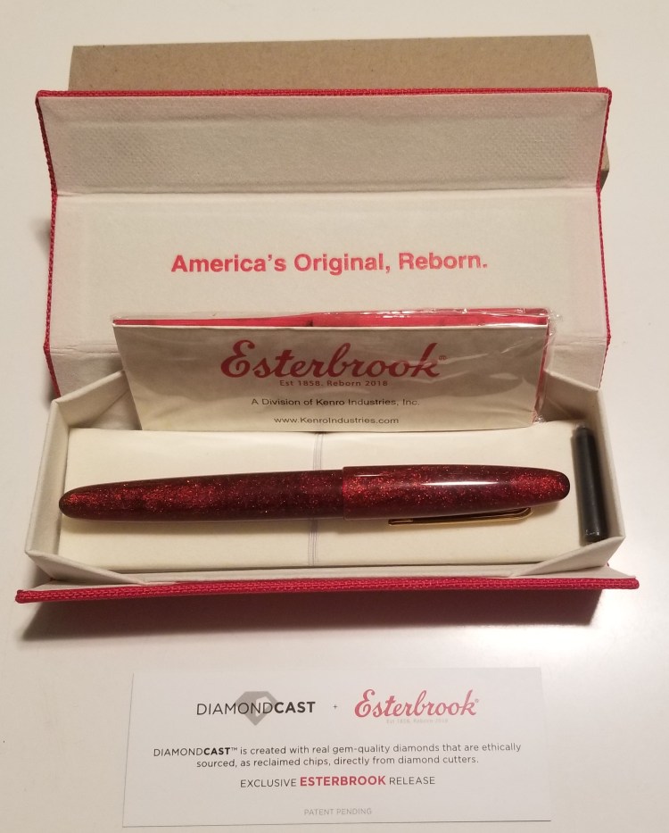 When I first got the box in hand, even before opening the pen, I thought to myself how fitting it is that the box would be a beautiful red with a simple design, much like the colors of the pen. I know it is a normal Esterbrook box, but somehow it just seemed so perfect for this pen.