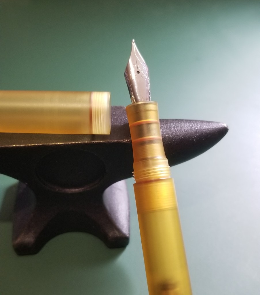 When I first learned about Ultem being used as a material to make pens, I was intrigued. It is a material many of us may have seen before but are not aware of. For years, it has been used in medical instruments, as an electrical insulator, as an underwater connector, and in the aerospace industry to reduce weight in place of metal parts. It is a strong but light weight plastic that is chemical resistant as well. I thought to myself that this would make a great material for an everyday workhorse pen that could withstand some abuse. Schon DSGN even tested this pen with Noodler’s Baystate Blue and it didn’t permanently stain it after weeks of being in the pen. It is recommended though, not to use ammonia based cleaners, but alcohol will not harm the material.