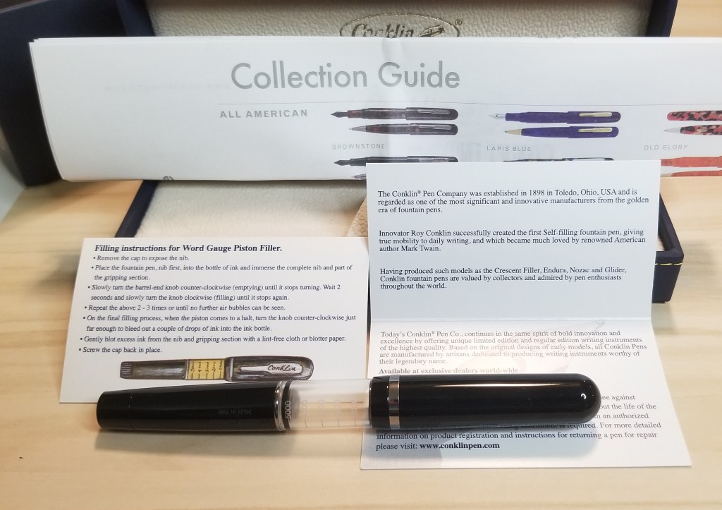 What if there was a pen that could tell you just how many words you could get from a the ink it holds? That was the idea that Conklin had when it came up with this variation of the Nozac (no sac), the first United States made piston filler. At the time, Conklin advertised “A car without a gas gauge is like a pen without a word gauge.” It was still a new concept at that time to be able to see how much ink was left in a pen.