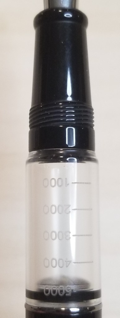 One other very impressive thing about this pen is the ink capacity. In order to test this, after filling the pen, I then emptied it into a graduated cylinder. I was surprised when the amount of ink was just about 2.5 ml. There was even still ink in the feed. This makes for more than enough ink for a full day’s use, or week’s use for many people.